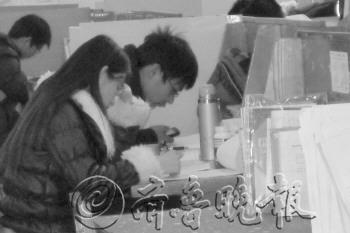| ◤11日中午,青大图书馆自习室里的考研学子仍然埋头备战。 |  | ◤青大校园里,考研学子为备战考试不惜四处“求座”。 |