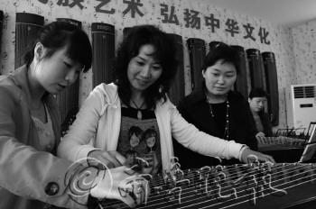 27日,在奎文区北王社区,几位居民正在学习古筝弹奏的基础知识。据了解,把古筝文化引进社区,社区居民不仅可以近距离领略古典乐器的魅力,还能在专业老师的指导下免费学习古筝弹奏,让传统文化得到更好地传承。