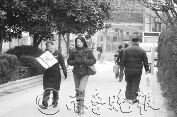 | 青岛香港中路上,不少培训机构的推销人员拿外教当卖点。 本报记者 李珍梅 摄 |