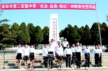 “我的祖国,高山巍峨,雄伟的山峰俯瞰历史的疯狂雨落,我的祖国,我深深爱恋的祖国,你永远充满希望,朝气蓬勃”。3日29日,莱阳市第二实验中学800名师生徒步25华里到莱阳市红土崖烈士陵园扫墓。在烈士纪念碑前,该校举行了“纪念 品读 铭记”诗歌朗诵活动,在清明节前夕以一份“特殊礼物”献礼革命先烈。 通讯员 姜金胜 本报记者 刘清源 摄影报道