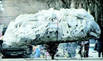 自述:小小电动车拉了这么个庞然大物,别人只好乖乖跟在后面。