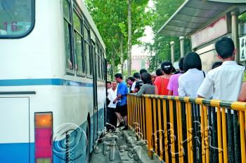 | 省城试点重点公交线路全路段排队乘车难度不小 | |