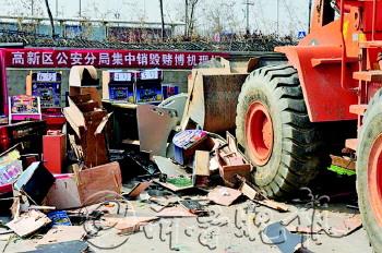 3日上午,烟台市公安局高新区分局集中销毁了70余台查获的赌博机。自去年以来,高新分局组织警力对全区游戏厅进行了多次集中统一清查,截至目前,共查处游戏厅及各类赌博场所10余处,抓获违法犯罪人员15名,收缴赌博游戏机70余台。