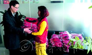 3日下午,烟台冠群驰骋投资管理(北京)有限公司烟台分公司,为烟台慈善总会鼎丰服务队捐助了200套义工服。据义工介绍,因最近启动“久久圆梦”和助学活动,义工队伍有所扩大,不少热心人士加入了服务队,却一直没有义工服。这家公司得知情况后,花费一万多元为义工定做了200套义工服,帮义工们圆了梦。