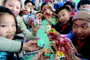 清明节有吃鸡蛋的习俗。4月3日,文登路小学开展了画彩蛋活动,孩子们在鸡蛋上画出蓝天大海、笑脸、哆啦A梦等各种图案。