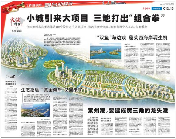 小城引来大项目 三地打出“组合拳” 今年莱州市将重点推进189个投资过千万元项目,招远有黄金海岸,蓬莱有两个人工岛,各有看点
