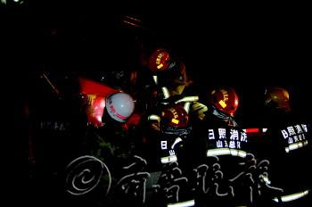 | 16日晚,消防官兵在现场对伤者进行救援。