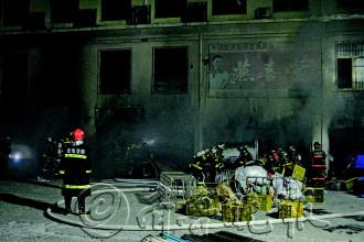 17日晚8时30分许,寨子农副产品批发市场西侧、世昌大道95号楼南侧一楼的一仓库突发火灾。大火迅速蔓延,11号至20号的10间仓库惨遭殃及。环翠消防大队北山路中队等市区多个消防中队迅速出动10余辆消防车辆赶赴现场扑灭大火。据悉,10间仓库内多存放水果,塑料箱、泡沫箱等物易燃。 本报记者 吕修全 摄影报道