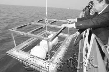 本报记者 陈之焕 本报通讯员 张文荣 郭云 21日,青岛举行2013年首次海葬,在八大峡码头举行首次公祭仪式,并采取新的沉坛海葬方式——启用可降解的莲花坛。当天,2000多名家属参加公祭,为545名逝者举行海葬,是规模最大的一次海葬。 2000多名家属参加公祭仪式 “千顷波涛,伟哉大海……远送亲人,魂归大海……”伴随着主持人诵读海葬祭文,21日,海葬公祭仪式在八大峡码头举行,现场2000多名逝者家属参加公祭,为亲人默哀祈福。 这是青岛市首次举行海葬公祭仪式,也是海葬规模最大的一次。在海葬公祭现场,青岛市殡仪馆增设了一支海葬女子导仪队,引导参加海葬的逝者家属领取逝者骨灰、鲜花、手套,引导上船等。 “随着海葬逐渐被人们接受,越来越多的人关注海葬。今年海葬,我们采取市民的建议,首次举行海葬公祭仪式,为逝者念祭文、默哀,更能显现出海葬的庄重。”青岛市殡葬管理处副处长魏常彬介绍,随着青岛海葬的常态化,应市民对海葬的要求,民政部门采取市民建议,逐步完善海葬形式,力争让更多人接受这种绿色环保的殡葬方式。 首次使用可降解的莲花坛 21日,今年的首次海葬除了使用传统的骨灰撒海方式外,还启用了新型的沉坛仪式,即将逝者骨灰装入可降解的莲花坛沉入海底。 “这个装骨灰的莲花坛采用的是可降解的新型环保材料,形状像水莲,所以取名莲花坛”魏常彬介绍,海葬沉坛仪式以葬代撒,寓意着逝者在水莲的陪伴下,长眠大海,长久安息。为了研制莲花坛,工作人员专门去宜兴取陶土,研发了两个多月才成功。 记者在现场看到,莲花坛为白色,呈水莲型,坛盖为白色半圆形,上面有特制胶,沾水即可密封。坛底有四个透气眼,便于坛子沉入海底时进水降解。“整个降解过程约需10分钟。”青岛市殡仪馆工作人员介绍,莲花坛沉入海底即可降解成类似于海沙之类的物质,环保无污染。 据了解,此次海葬共有47名逝者家属选择为逝者采用莲花坛,以沉坛方式进行海葬。 外地家属组团为逝者海葬 此次海葬是青岛市自1991年实行海葬以来第67次海葬,约2000人参加,骨灰撒海545具,分4批次34船进行,是历次中规模最大的一次。自2010年10月1日起,青岛市对本市居民实行免费海葬,三年来,骨灰免费撒海共3005具,财政补贴150多万元。除了青岛本地市民外,此次海葬还吸引了来自济南、淄博等外地的400多位家属来青岛为126位逝者举行海葬。 据悉,此次海葬是济南民政局第一次组织逝者家属来青参加海葬,“之前都是我们提供青岛民政部门的电话,居民自己打电话咨询,随着接受海葬人数的增多,今年起我们开始在当地组织逝者家属前来青岛海葬。”济南市民政局工作人员介绍,自今年开始海葬报名以来,共有140多名逝者家属咨询海葬情况。当天,济南逝者家属为20名逝者进行海葬。 “海葬是父母的遗愿,得知当地组织来青岛海葬后,我特地替父母报名了却心愿。”来自黑龙江的刘先生说,在黑龙江也有很多人有着大海的情结,希望去世后葬到海边,他的父母有这样的心愿,以后他也准备进行海葬。 存放殡仪馆22年后 家人骨灰撒进大海 21日,66岁的老人陈同山捧着父母的骨灰来到海边,参加2013年青岛首次骨灰撒海活动。 “我的母亲1991年就去世了,父亲1997年去世,因为兄弟姐妹的意见不合,这么多年来一直把他们的骨灰放在殡仪馆,现在大家都看开了,同意将父母进行海葬。”陈同山说,海葬是一种绿色环保的方式,父母去世后的遗愿就是葬入大海,22年了,父母终于可以魂归大海了。百年之后陈同山也要子女将自己海葬回归自然。