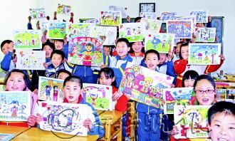 日前,乳山市午极镇中心小学开展了“爱心献雅安 我们为你加油”自制宣传画活动,孩子们自己绘制图卡,祝福灾区的小朋友健康快乐。