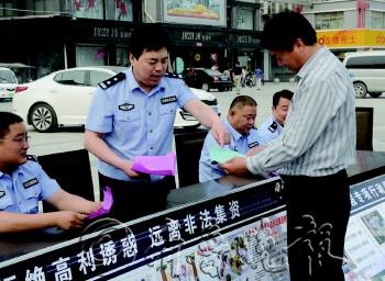15日上午,菏泽市公安局联合工商、农业等行政执法机关和行业主管部门,在苏宁电器广场开展了打击和防范经济犯罪宣传活动。市公安局及有关部门设立了咨询台,实时答疑解惑,现场讲授识假防骗知识,解答群众提出的问题。