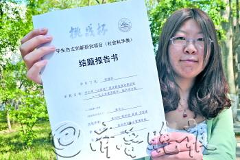 | 李可心团队的劳动成果《学生自主创新研究项目结题报告书》,近30页,内容丰富详细。 本报记者 赵伟 摄 |