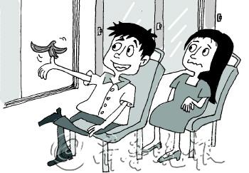 漫画:贺妍妍 @summixx:每天上下班都要坐很长时间的公交车,沿途的风景看腻了,就观察车里的人和事,来说说那些公交上令人反感的小事。 @haixingzhiai:在车内吃东西,往窗外扔垃圾。 @cuijinyu419:昨天车上一个大叔的手机一直放着“妹妹坐船头”。不是为了苛责难为谁,有心的人多注意,我们就能让别人更舒心。 @DOPE:我最受不了大姨大姐们大嗓门聊天算计家长里短,尤其是有的聊着聊着就自己恼了,各种脏话各种歹毒,大早晨大晚上的听了都不舒服。 @网友:公交毕竟是一个公共场所,有那个小电视就行了,您手机的外放功能真的很好,我们也都知道了,就不要把您听的歌放老大声,蹂躏别人的耳朵了。 @被追逐的松果:讨厌人多的时候,坐着座位的乘客不但把腿伸到过道,有的还翘着二郎腿。 @网友:最反感不给孕妇和抱小孩让座的。上周看到一个男的,和他老婆一起坐车。她老婆怀孕,两人都有座位,半路上来个抱小婴儿的阿姨,这男的愣是装没看到。 @summixx:上班路途遥远,每天横跨三区,翻山越岭,路上难免遇上堵车延误时间,有时候心里很着急,希望公交能尽量快停快走,然而有的人到了站点磨磨唧唧不下车,耽误了一车人的时间。 @憧憬奢侈:有人愿意倚着下车门口的栏杆,你还让不让别人把着了?上下班的高峰期,站都没地方扶着,你一个人占一根栏杆跟一个人占好几个座没啥区别。 来源:烟台论坛
