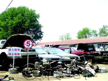 | 拆解厂内停放的报废车 记者 于飞 摄 |