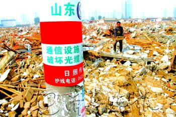 小孙家村已经拆迁得差不多了,但为不影响日常业务,传输局的线杆要等最后一户村民搬走后才能拆迁。 本报5月15日讯(记者 刘伟 通讯员 赵洪) 3月26日19时30分,日照市岚山区虎山疏港大道,一辆自卸车撞断日照传输局所属电杆3棵,导致日照至岚山9条光缆线路阻断,造成直接经济损失7万多元,另外还有几名摩托车驾驶员被悬挂在半空的钢线刮倒受伤。 事故发生后,由于虎山派出所及时进行现场处置,不仅有效防止了次生伤害的发生,也避免了受损光缆被过往的车辆碾轧造成阻断。 目前,日照市公安局治安大队和线路治安办公室已经与当地派出所取得联系,一方面对他们在事故处理过程中对通信线路的保护意识和及时专业的处置措施表示肯定,另一方面要求其尽快做好现场调查取证工作,通过提取监控录像,追查肇事逃逸车辆,尽可能挽回该事故对传输局造成的经济损失。 ◎律师说法 损坏通讯线路 可判七年徒刑 15日,记者联系到了律苑律师事务所律师赵世玉,据他介绍,我国现在对于线路维护的法律法规有很多,其中包括《刑法》、《军事设施保护法》、《公路法》、《国务院、中央军委关于保护通信线路的规定》、《电信条例》等。 “《刑法》第一百二十四条规定,破坏广播电视设施、公用电信设施,危害公共安全的,处三年以上七年以下有期徒刑;造成严重后果的,处七年以上有期徒刑。过失犯前款罪的,处三年以上七年以下有期徒刑;情节较轻的,处三年以下有期徒刑或者拘役。”赵世玉说。 此外,《军事设施保护法》则规定,任何单位和个人,造成损坏线路、阻断通信的,应责令其承担修复线路的费用并赔偿阻断通信所造成的经济损失,直至依法追究刑事责任。 而且,赵世玉还介绍,相关部门在施工时,对有可能影响通信传输的,也需要与传输局等部门联系协调。 “《国务院、中央军委关于保护通信线路的规定》第八条规定,在通信线路沿线附近建筑施工、筑路、兴修水利、农田建设、植树造林、砍伐树竹、运输超高超大物件、架设线路、敷设管道和进行水下作业等,如有可能危及通信线路安全,应事先取得通信部门同意,并采取技术防范措施以后方可动工。”赵世玉说。