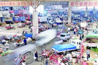 16日,寨子农副产品批发市场正式搬迁。当日凌晨市场上的交易现场还如往日一样火爆,7时许,市场管理人员将门口的标志牌拆卸下来,部分老商户也将经营相关的财物搬至了新市场。17日,新老商户将在新市场开始交易。图为寨子农副产品批发市场内商户正在搬迁的场景。