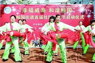 15日,环翠区鲸园街道办首届社区艺术节启动,各社区文艺骨干奉献了精彩的文娱节目。本届文化节历时三个月,精选的节目将在5个城市社区进行巡回演出。