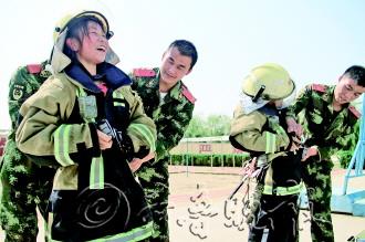 | ▲小记者在体验如何穿戴消防服装。