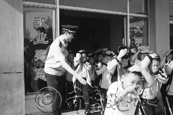 15日下午,桓台马桥镇北营小学学生在老师和马桥派出所驻校园法制辅导员的疏导下,进行地震逃生演练,仅用了1分20秒钟就全部集结到学校操场安全区域。今年以来,马桥派出所与辖区中小学校建立突发事件疏散演练机制,派出所驻校园法制辅导员定期对中小学师生进行应对突发事件安全专项教育。