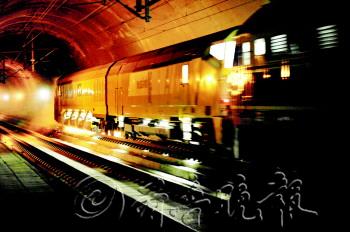 | 5月31日凌晨,钢轨打磨列车以时速80公里的速度经过京沪高铁党家庄隧道。 本报记者 陈文进 摄 |