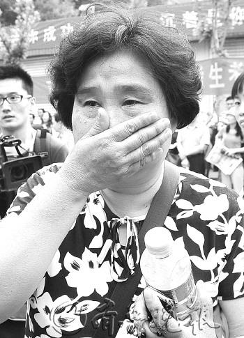 | 7日,江苏一考生临阵脱逃,其母亲在考场外失声痛哭。 中新社 发 |  | 车祸现场 |  | 考生的姑姑激动地流下泪。 本报记者 邱志强 摄 |