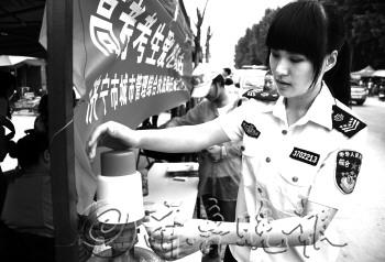执法队员们在为考生家长提供便利。李岩松 摄
