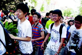 | 7日上午,一中考点前,考生微笑着走进考场。 见习记者 韩逸 摄 |