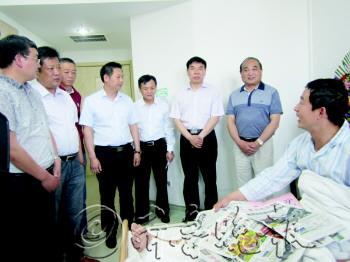 | 亳州老家的领导到病房看望蒋兴保。 记者 侯艳艳 摄 |