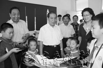 本报6月7日讯(记者 王乐伟) “这是我们用PC板做的飞机模型,只要放上电池就可以飞起来。”7日上午,德开小学四年级二班的学生们热情地介绍着自己的作品。记者了解到,山东省关工委主任高新亭一行来到德州,了解德州市关心下一代工作以及青少年素质教育工作开展情况,参观德开小学并进行调研座谈。 7日上午,山东省关工委主任高新亭、省关工委副主任兼秘书长陈明甫一行在德州市委书记、市人大常委会主任吴翠云、市委副书记满春重,市委常委、秘书长韩建亭、市关工委主任蔚立臻陪同下,首先来到德开小学走访慰问。 “这些都是用彩色的纸折成的,这个是一个龙舟,只用了粉红色和大红色的彩纸。”在德开小学,小讲解员们向大家讲解着展示台上的手工作品,有的是珠子串起来的生肖,有的是毛线织成的企鹅,这些作品都是小学生自己动手完成的,书画和手工作品展受到了到访领导的称赞。 除了书画及手工作品展,高新亭一行还参观了德开小学科学实验室、天文教室,与小朋友们一起感受了宇宙的奥秘。在科学实验室,同学们自己动手完成的作品,如飞机模型、太阳能直升飞机等,都受到了大家的赞赏。此外,德开小学的学生还编演了诗词剧、健美操、舞蹈等节目。离开德开小学后,高新亭一行参观了德州景津压滤机集团有限公司和德州市博物馆。 参观结束后,高新亭一行、德州市委市政府有关领导、德州各县市区关工委代表及“五老”代表进行座谈。座谈会上,高新亭对德州市关心下一代工作取得的成绩给予充分肯定,并就做好下一步工作提出希望和要求。吴翠云在座谈会上代表市委致辞,市关工委主任蔚立臻代表德州市关工委作了工作汇报,县市区关工委代表以及德州市“五老”代表分别作了发言。