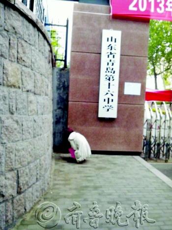 | 迟到女生进场被拒后,蹲在考点门口痛哭。 (图片由目击者提供) |