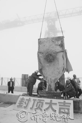 本报6月7日讯(记者 蓝娜娜) 7日,青岛在建第一高楼——财富中心工程正式封顶。该楼地上建筑总高241.85米,设计楼层65层,将建成一座集办公、商业、公寓于一体的综合性建筑。该楼接下来将进行外幕墙搭建及内部精装修,施工时间还需一年多。 7日上午,随着最后一罐混凝土的浇筑,位于香港中路与汕头路路口的财富中心工程正式封顶。该工程总建筑面积为111803.47平方米,设计为地下5层,地上65层,地上建筑总高241.85米,为青岛在建第一高楼。 该工程总承包单位中铁建工集团青岛工程有限公司总工程师刘凡民介绍,财富中心于2009年4月开工,经过4年多时间,先后完成了26.1米超深基坑施工、13层局部转换层及25层百米高位结构转换层施工。根据工程设计,该综合性建筑1层、2层为银行,3层至24层为办公写字楼,25层至65层为公寓,在公寓内,入住者可享受360度观海体验。 “大楼主体封顶后,我们将进行外立面和内部的装修。按照计划,外幕墙将采用玻璃幕墙和石材幕墙相结合,内部所有楼层均进行精装修。因为工程量大,计划还需要一年多至两年的装修时间。”刘凡民总工程师说,为了解决停车问题,该项目地下5层全部规划为停车场。 据介绍,由于楼体高且结构转换大,为了保证楼体工程质量,除了在转换层使用总重约1100吨的钢结构及总重1000吨的钢筋外,施工中还会对每个焊缝进行X光“探伤”,确保钢材焊接严密。