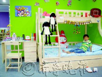 周六,我跟随齐鲁晚报小记者的队伍,参观了滨州银座家居的儿童家具展厅,那里有好多漂亮的儿童成长家具,款式和尺寸完全为儿童设计,水性漆家具、实木家具等应有尽有,这里真是青少年和儿童成长的摇篮。 我最喜欢的是鑫汉邦牌的芬兰松木家具,它用纯天然松木制造,保持原木色,无异味,无污染,不含对身体有害的物质成分。尤其是二层小床,可以容纳两个人居住,还能当书橱、衣柜。再配上上来下去的梯子,简直是一个学习和休息的城堡。我喜欢的不得了,爸妈说可以考虑订购一套,我高兴地跳了起来。憧憬着,哪一天我的房间里一下子就多出这样的一张床,每天在上面休息、玩乐。