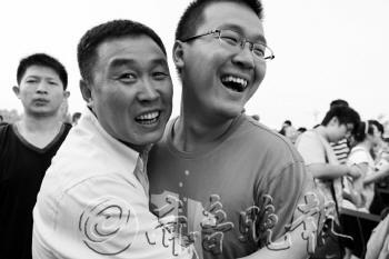 | ▲一名家长在考生入场前给予鼓励。 本报记者 王鑫 摄 |