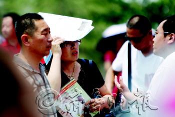 7日上午,2013年高考大幕拉开。记者走访张店中心城区三个高考考点发现,除了陪考的家长,各考点门口还簇拥着很多“为考生服务”的机构,一些商家趁高考之机,打着服务考生的旗号,纷纷前来营销自己,“揩高考的油”。 商家摊位绵延百米 7日上午8时许,记者来到淄博第十一中学考点看到,虽然距离开考还有一个小时,学校门口两侧已经挤满了人,除了前来考试的考生和陪考的家长外,还有很多机构和商家,打出为考生服务、免费提供饮用水等招牌,伺机营销自己。 树荫下的“黄金地段”更是热闹,各种遮阳帐篷摆满了道路两侧,校门口南北两侧绵延近百米。身穿印有各种宣传标语衣服的工作人员在人群中不停穿梭,向过往的家长和学生发放宣传材料。记者在人群中走了一趟,几十米的距离手里被塞了近30份宣传单页。各种机构的遮阳伞篷、桌子以及单页发放人员,几乎将考点门口的人行道占满,十分拥挤。 在淄博市实验中学、淄博中学等考点门口,记者也看到了类似的情况。考点周围密布了各种教育培训、出国代理等机构。甚至连一些与高考考生无关的商家,像地产公司、医院等也纷纷来到考点做宣传。 营销宣传五花八门 在各考点门口,各类商家为了营销自己,都使出了浑身解数。 这些机构人员发放的材料和物品中,印有宣传画和标语的小扇子深受欢迎。“但是,也有不少广告发的很不合适宜。”陪考的家长孙女士有些气愤地告诉记者,她收到了几个培训机构发的宣传复读的传单,“孩子正在高考,他们就发复读传单,太讨厌了!” 在淄博中学考点,一家汽车4S店的工作人员把发放的矿泉水原标签撕掉,贴上了自己制作的宣传标签。一家培训机构工作人员为了拉拢客户,专门找家长拉家常,以此博取信任。 “服务有些变味” 采访中,不少家长对这些宣传表示,“商业味太浓了。”市民王女士表示,“这些机构为考生和家长提供服务,我们很高兴,可是借着高考之机大打营销战,总让人感觉很不是滋味。说是为考生服务,其实还是在为自己做广告。” 某中学带队来考试的张老师对此说道,每年高考,很多商家打着服务考生和家长的牌子,来揩高考的油。“商家为考生和家长提供服务本来是一件好事,体现了企业的责任和社会担当,但是过分商业意味的宣传,就丧失了原来做好事的本质,就变成了纯粹揩高考的油。”商家在考点周边设立摊点,也为考生带来一定的不便。“现场人太多,很拥挤,不仅浪费时间,更容易影响考生心情。” ◤不少陪考的家长将传单当成了“遮阳伞”。 本报记者 王鑫 摄