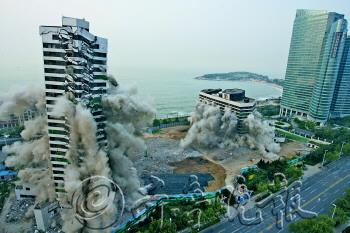 历经三年时间准备,10日早晨5时16分,位于青岛市香港西路48号的五星级酒店——青岛海天大酒店一期、二期主体结构顺利爆破拆除,正式退出历史舞台。