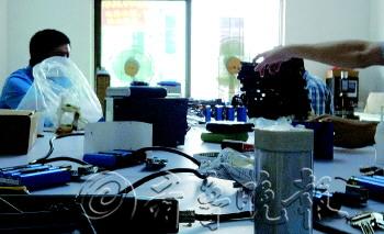 记者暗访的深圳福田一家移动电源组装作坊位于民房内,可根据客户需求定做山寨货。 本报记者 王倩 摄