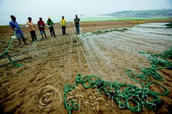 18日,在第三海水浴场,浴场工作人员正在整理防鲨网,为7月1日的浴场正式开放做准备。据介绍,防鲨网全长500余米,本月底将全部下海安装完毕。此外,待浴场正式开放时,三浴将有10名救生员上岗,比去年多两名。 本报记者 张晓鹏 摄影报道 浴场惊现 死鲨鱼 18日早上涨潮时,第三海水浴场的工作人员杨师傅在海滩上发现了一条死鲨鱼。这条鲨鱼长约1.5米,身体重度腐烂,头部缺失。据介绍,鲨鱼生活在深海,而浒苔一般漂浮在近海海面上,基本可以排除两者之间的关系。图为杨师傅奋力把鲨鱼拖走。 本报记者 张晓鹏 摄影报道