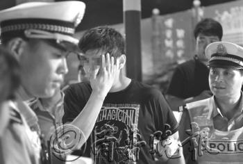 | 19日夜晚,一酒后驾车的司机用手挡着脸,躲避媒体镜头。 本报记者 徐延春 摄 |
