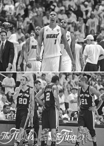 本报记者 叶嘉利 北京时间19日的NBA总决赛第六战上演了跌宕起伏的悬念大片,迈阿密热火队在最后时刻落后5分的情况下将比赛拖入加时赛,并最终以103:100击败圣安东尼奥马刺队,将总决赛拖入“抢七”大战。 发带可以不要,球鞋可以扔掉,膝盖撞伤了可以继续打,哪怕整场被打成筛子了还是要送出两记盖帽……这就是热火对胜利的渴望,这是对总冠军的追求。历史从来不会记住第二名是谁,赢球,或者赛季结束,没有任何退路。邓肯的老而弥坚、詹姆斯的三双以及雷·阿伦的三分球,足以与那些曾经的经典时刻比肩。伟大的逆转让热火留住了一息火苗,重生的热火必然更加强大。 总决赛就是诞生传奇的地方,6场比赛下来,每一场都有不同的英雄来主宰比赛,诸位大腕、草根都像走马灯似的亮相,这是在总决赛历史上没有过的奇特现象。第一场帕克的准绝杀,第二场轮到热火的查尔莫斯,接着就是尼尔和格林的三分球以及韦德的爆发,谁料天王山之战被“妖刀”来了个突袭。本场比赛,最大的亮点无疑是邓肯返老还童,还有雷·阿伦的救命三分。 邓肯上半场的表现堪称完美,在攻防两端都展现了超级巨星的水准,与之对位的波什则被打成豆腐渣。半场13投11中,拿下25分8个篮板,邓肯差点就把MVP奖杯收入囊中。但是,石佛终究累了,37岁的高龄成了邓肯前进的最大包袱。在比赛的最后21分钟,邓肯一分未得,比赛结束时邓肯的得分也停留在30分。同样是37岁的雷·阿伦,在常规时间最后的5.2秒投进的那记三分球,将永远留在人们的记忆里。 这并不是一场完美的胜利,更像一场跌宕起伏的好莱坞大戏。谁都没想到邓肯会在上半场把热火的内线砸了个稀巴烂,最后马刺领先10分进入末节。当比赛还有不到一分钟,马刺还领先5分。当工作人员已经准备布置颁奖典礼的现场时,已经有大量的热火球迷退场。就在这最后一分钟,全世界的球迷包括大部分热火球迷都以为总冠军是马刺的了,但情势转变如此之快,詹姆斯和雷·阿伦的三分又把热火从悬崖边拉了回来,马刺伸向总冠军奖杯的手又缩回来了。一切都演绎到了极致,邓肯半场暴走、詹姆斯三双、雷·阿伦续命三分,这样的大喜大悲之间,人们只能跟着剧情一步一步往下走。 本版照片均为新华社发