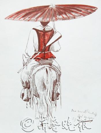 | 艾米丽自画像 |  | ▲《泰山》——艾米丽作 |  | ◤《骑马撑伞的卫兵》——艾米丽作 |  | ▼《孔府内的庭院》——艾米丽作 |