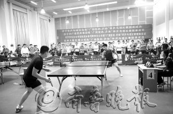 近日,由济宁市乒乓球协会主办的“广联医药·乒协杯”全市乒乓球比赛顺利举行,该比赛旨在迎接省运会,推动全民健身活动,丰富干部职工业余文体生活。图为比赛现场。 本报记者 马辉 摄