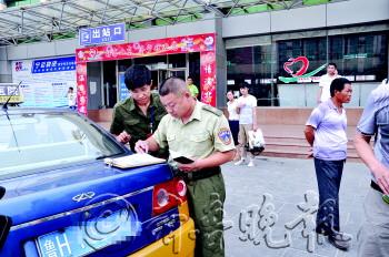 本报济宁6月19日讯(记者 李蕊) 近期,一些市民反映,个别出租车驾驶员载客时“挑肥拣瘦”,尤其是车站附近的一些的哥,专拣长途客拉,对路程较近或路段较堵的乘客则以各种理由拒载。18日下午,记者跟随济宁市交通运输部门执法人员在汽车北站一带进行了暗访,三名的哥因拒载被当场查处。 18日17时许,记者跟随由城区出租车管理所、任城区交通局等部门联合组成的执法队伍来到了济宁汽车北站广场附近进行暗访。“根据前期我们掌握的情况看,车站门前最常出现拒载现象。”据城区出租车管理所相关负责人介绍,近期他们执法的重点将集中在汽车总站、北站及火车站一带客流密集地,重点查处拒载、不按计价器收费等违规行为。 17点30分左右,当执法人员暗访设备及人员都准备就绪后,记者跟随其中一队执法人员躲避在隐蔽处开始用设备对现场车辆进行监控。在等待十几分钟后,只见北站出站口处走出了两名青年男子,在监听设备中记者清楚的听到对方告诉一名的哥说要去秀水城,但的哥却以在等人不方便离开为由拒绝了对方。随后,两名男子又依次询问了后面两名同样打着“空车”等候的出租车驾驶员,可对方也分别以路段太堵、要换班等理由拒绝送其上路。“这几个驾驶员的表现都属于拒载。”现场一位执法人员告诉记者。在掌握三名驾驶员的违规证据后,守候在现场的执法人员当即查扣了违规的哥所驾驶的车辆。 “打着空车灯却拒绝载客,不管以何种理由就可以认定为拒载。”济宁城区出租车管理所负责人表示,当日被查处的三名出租车驾驶员目前正在接受处理,所驾车辆也已按照规定对其摘除了顶灯和计程计价器等营运标识,并实行停运一月的处罚。 据悉,为了约束驾驶员经营行为,一旦出租车被查实有拒载行为,城区出租车管理所将按照《济宁市城区出租汽车客运单车服务质量考核实施办法》,对违规出租车扣除20分。这便意味着,驾驶员不仅将要接受7天的培训学习外,还要接受停运整顿1个月的处理。此外,违规的哥从业资格证也将被吊销,这等于这名驾驶员一年内将不允许再从事出租车载客营运。