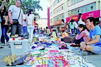 2013年大四毕业生即将离校,19日,在山大(威海)校园内,不少毕业生将过去用过的书籍和生活用品摆在校园内出售,不仅很多低年级学生“寻宝”,附近很多居民也前去“淘宝”。