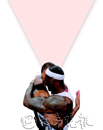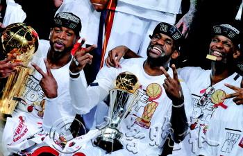 | 热火三巨头欢庆夺冠。 |  | ◥邓肯、詹姆斯英雄相惜。 |