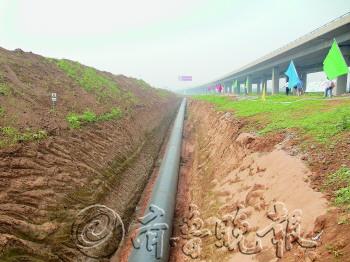 | 正在进行管道铺装的玉符河卧虎山水库调水工程。 |