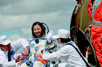 26日,航天员王亚平自主出舱后挥手致意。当日,神舟十号载人飞船返回舱在内蒙古主着陆场成功着陆,3名航天员身体状况良好。 新华社发