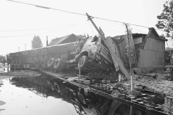 罐车侧翻民房坍塌,所幸居民逃过一劫
