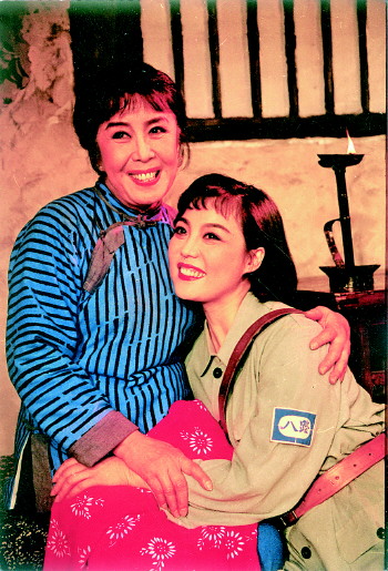 《苦菜花》剧照,郎咸芬(左)饰演母亲。