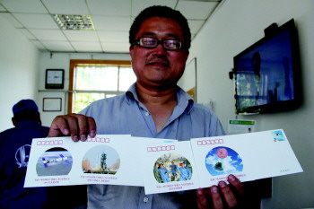 不过让他失望的是,一些纪念邮戳还在烟台市局,并不在福山区邮政局张格庄支局。该局局长王静说,工作人员正带着纪念戳往这边赶。苦等一小时后,带着纪念戳的工作人员还没赶来。记者走时,王国波还在等纪念戳。