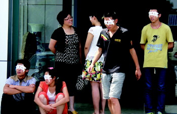 高考分数刚出,一些高中毕业生为了选择大学“加分”,纷纷选择了近视治疗手术。26日,在三八路一家近视治疗中心门前站着不少刚刚做完手术的学生。 本报记者 王小会 摄